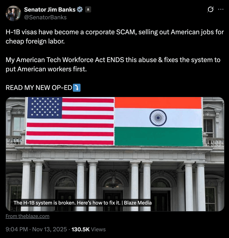 …and it’s worth noting that the August and September rhetoric culminated in the $100k H-1B fee proclamation and Project Firewall…