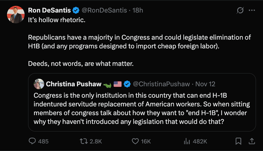 Then came the schism: We’ve covered the escalating Republican attacks on H-1Bs in this newsletter before…
