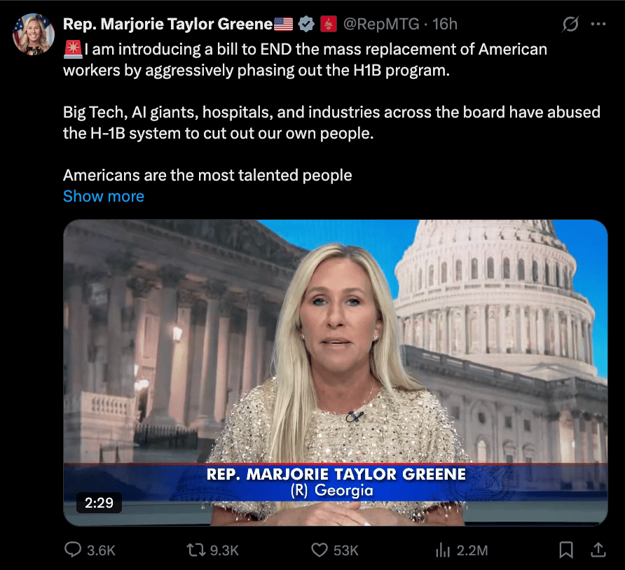Jokes aside, H-1Bs have never had this much airtime from the White House, Congress, and media personalities all at once.