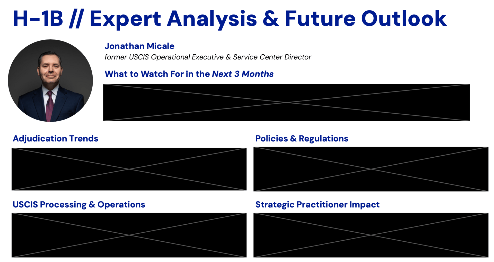 Example from the October Report. Expert analysis and future outlook on H-1B case processing from a former USCIS operational executive—providing practitioners with clear, exclusive, and tangible insights on the data to better inform your clients or employees.
